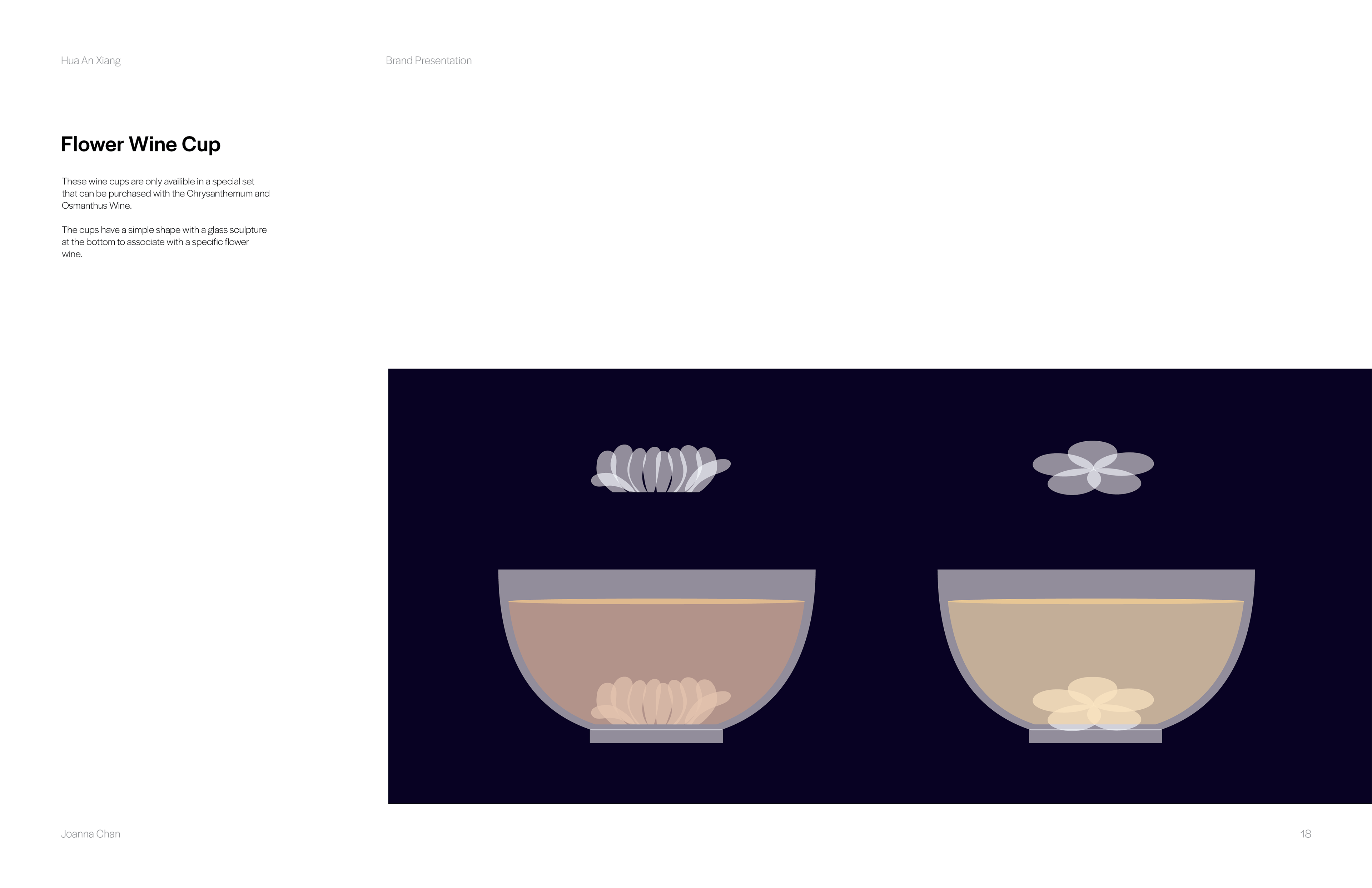 Hua An Xiang–the subtle fragrance of flowers–is a brand that distributes traditional Chinese flower wine and cocktails. Our signature design is our bottle packaging which showcases a glass flower sculpture.